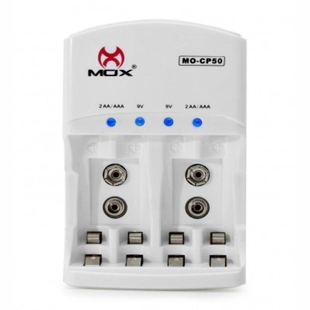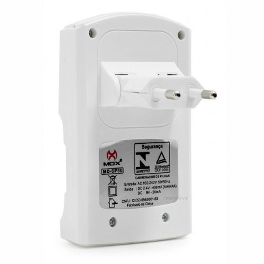 Carregador de Pilhas Mox MO-CP50 para AA, AAA e Bateria 9V Bi-Volt com Auto Stop
