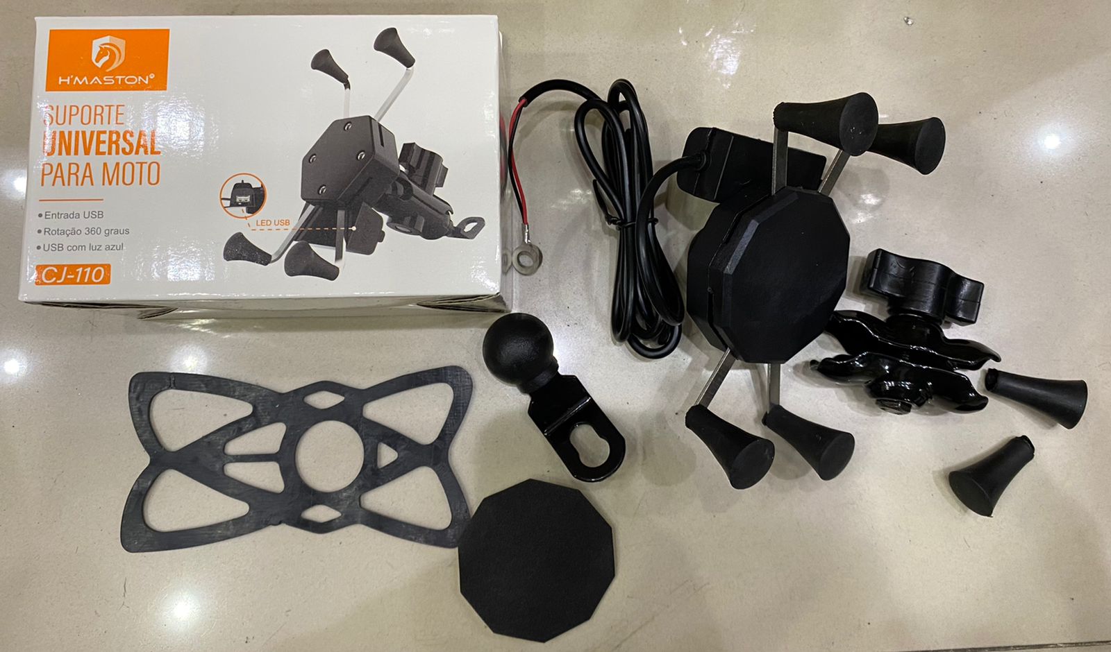 Suporte Celular Moto H’maston CJ-110 Garra X com Carregador USB e Rotação 360º